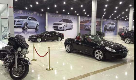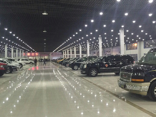 咱們有獨(dú)立的展廳。展廳的面積是6930平方,長165米,寬42米。一面19間,一間能放12臺(tái)車,一共兩面,能放456輛車。可想咱們展廳有多大了。
